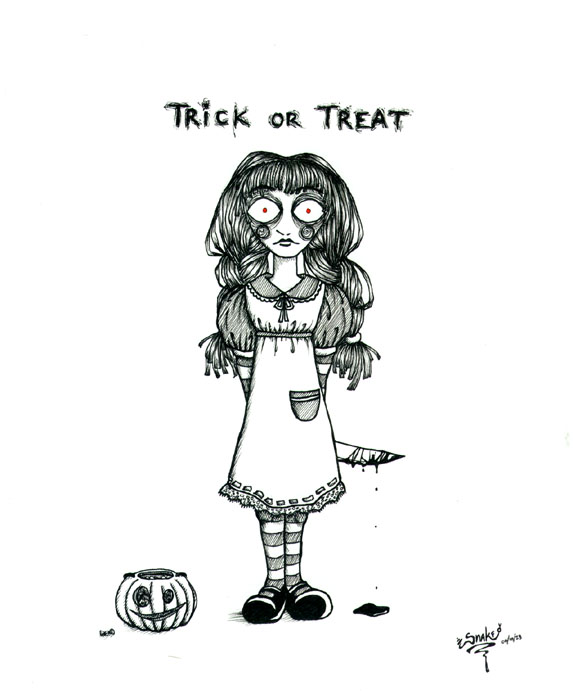 Petite historique: Psyfire a émis un concours dans l'attic (le forum de critique de dessins trop génial où je vais tout le temps car la population est vraiment trop aimable) qui avait pour thème: l'halloween. Bon, ok, le trick or threat, c'est assez cliché, mais j'ai quand même eu la deuxième place! ^_^