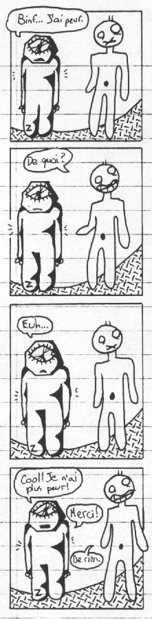 13 Binf... J'ai peur. De quoi? Euh... Cool, je n'ai plus peur! Merci! De rien. << >>