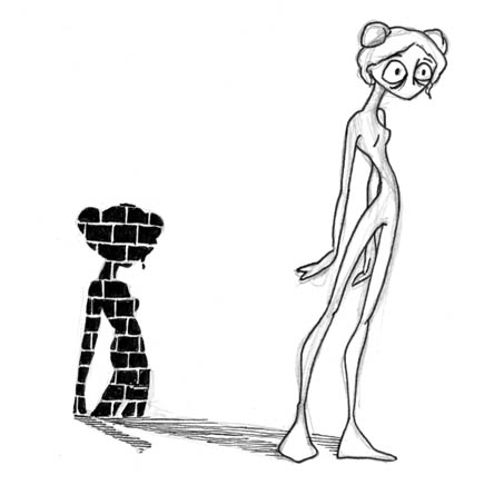 Petite historique: je l'ai appelé "exp2" parce que c'était de l'expérimental, comme "exp". Je me suis inspirée d'une bd que je venais de lire, Sincity (exemple 1, exemple 2).Dans la bd, les ombres définissaient les textures... c'était du grand génie, j'ai voulu essayer de fire pareil pour voir... ^_^;; J'adore la pose de la bonne femme.
