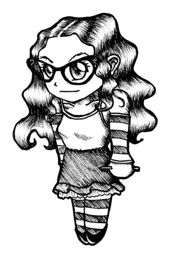 Petite historique: Eh bien c'est moi, ça, en super-deformed. C'était pou le forum, artists attic, il fallait tous qu'on fasse un chibi-self-portrait. d'ailleurs, j'en ai fait beaucoup par la suite, plein de gens m'ont demandé de les dessiner. Ils m'envoyaient une photo et puis hop! Note: ce dessin là a été fait à l'envers, c'est à dire le profil vers la droite. j'ai du le flipper dans photoshop parce que je me suis rendue compte que j'avais mis le crayon dans la main droite. Mais... arg! Vous connaissez le test du miroir? Quand on sait pas si on a réussi un dessin, on le regarde dans un miroir et on peut voir tous les défauts. Eh bien vu ce celui-ci est en miroir maintenant à longueur de journée, je ne suis m'mpêcher de pousser un soupir de dégoût à chaque fois que je le vois... Il est mieux de l'autre côté, croyez-moi!