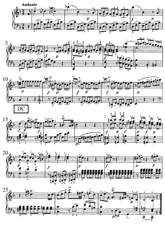 Sonate no1, K 279 (189d) en do majeur, deuxième mouvement, mes 1-28